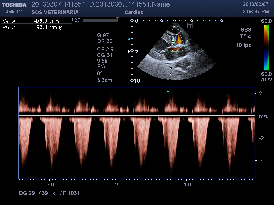 Ecco i filmati piu’ significativi osservare il flusso laminare che scorre parallelo alla parete laterale dell’arteria polmonare non piu’ continuo ma annullato in sistole dalla gittata in polmonare ,nel terzo filmato si vede l’ampolla del dotto
